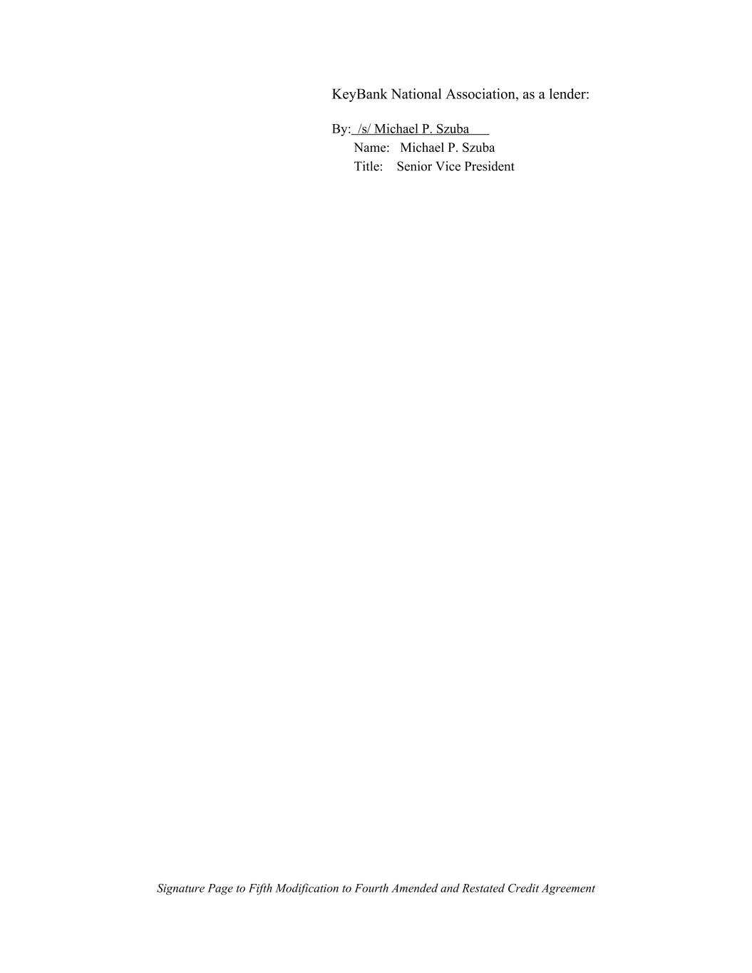 KeyBank National Association, as a lender: By: /s/ Michael P. Szuba Name: Michael P. Szuba Title: Senior Vice President Signature Page to Fifth Modification to Fourth Amended and Restated Credit Agreement