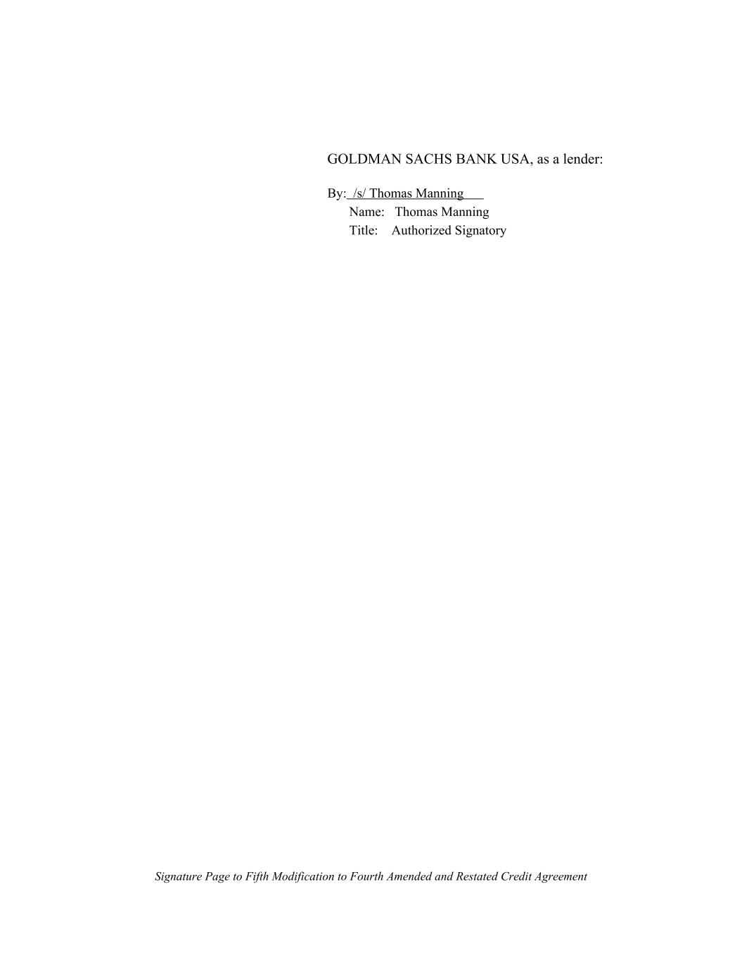 GOLDMAN SACHS BANK USA, as a lender: By: /s/ Thomas Manning Name: Thomas Manning Title: Authorized Signatory Signature Page to Fifth Modification to Fourth Amended and Restated Credit Agreement