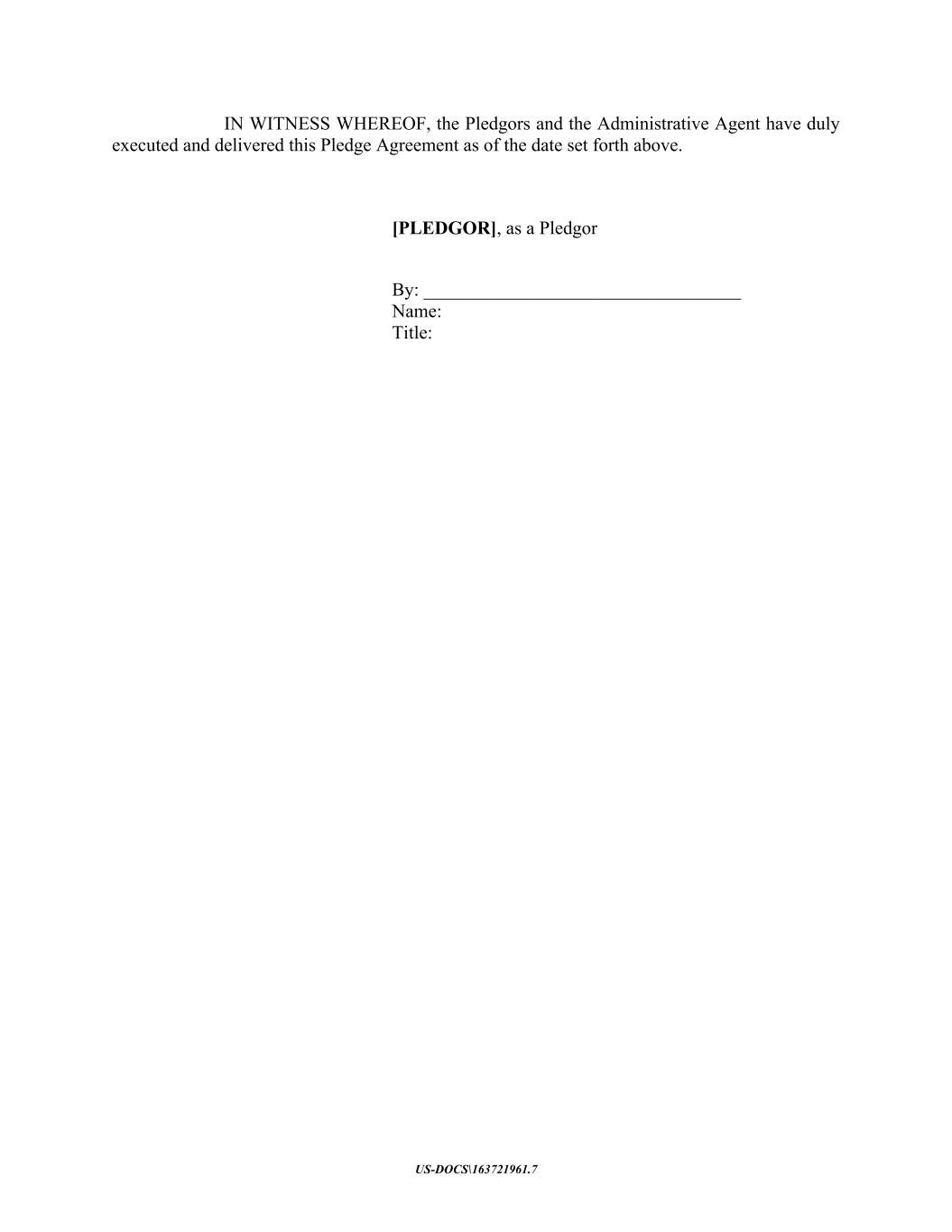 US-DOCS\163721961.7 IN WITNESS WHEREOF, the Pledgors and the Administrative Agent have duly executed and delivered this Pledge Agreement as of the date set forth above. [PLEDGOR], as a Pledgor By: __________________________________ Name: Title: