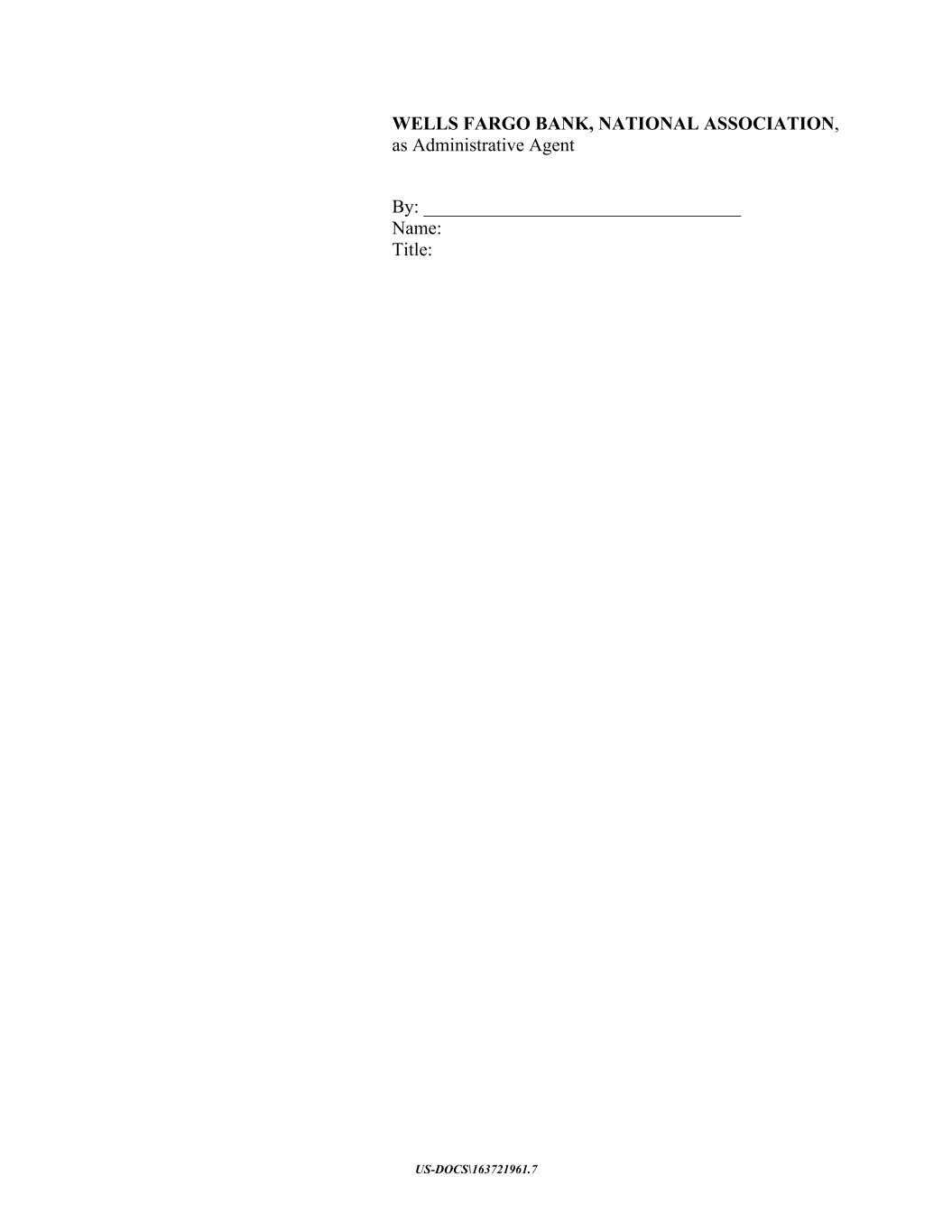 US-DOCS\163721961.7 WELLS FARGO BANK, NATIONAL ASSOCIATION, as Administrative Agent By: __________________________________ Name: Title: