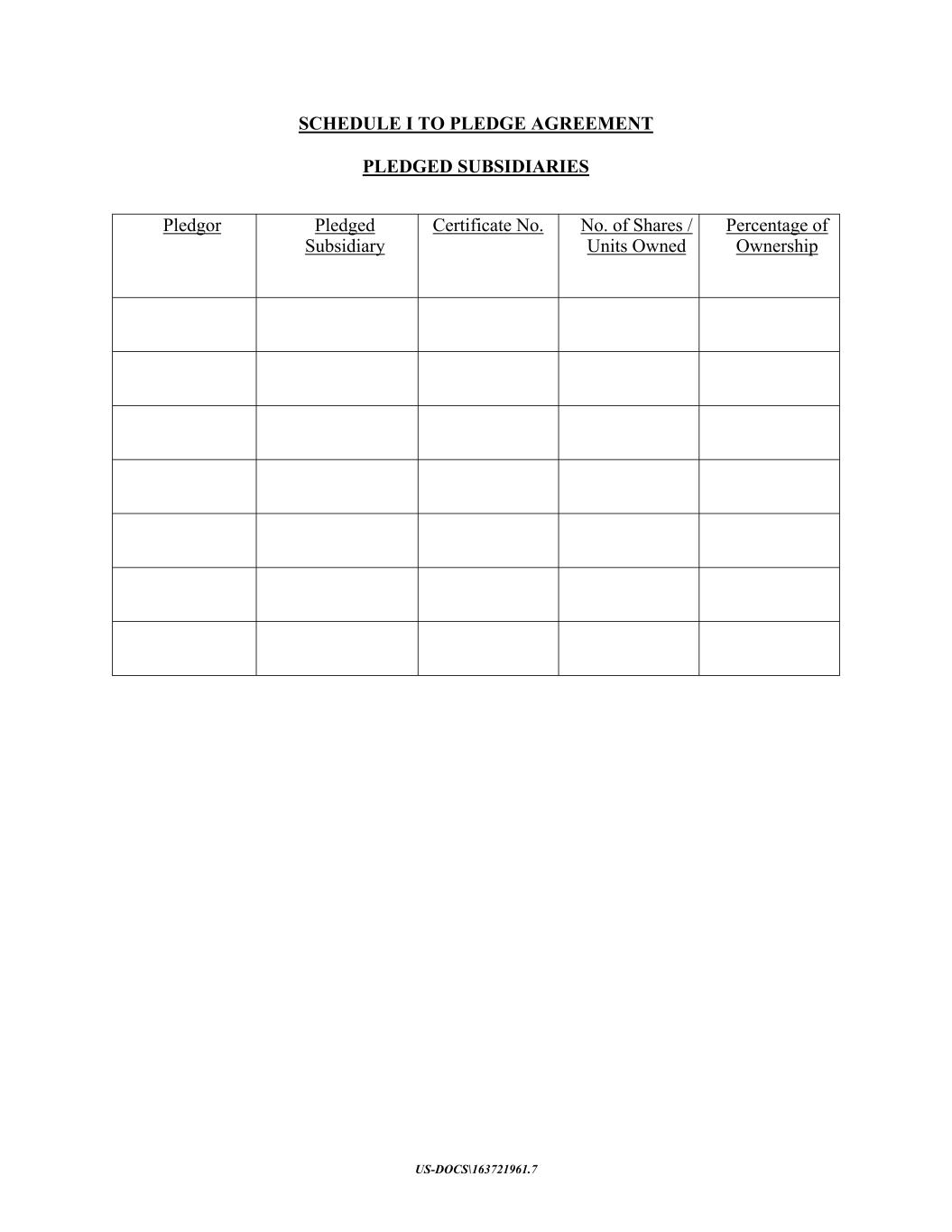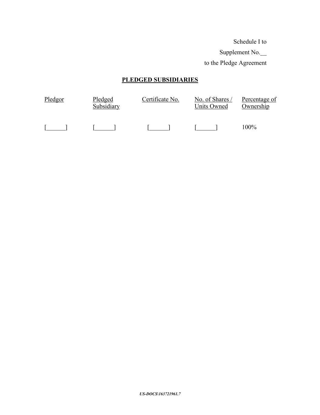 US-DOCS\163721961.7 Schedule I to Supplement No.__ to the Pledge Agreement PLEDGED SUBSIDIARIES Pledgor Pledged Subsidiary Certificate No. No. of Shares / Units Owned Percentage of Ownership [______] [______] [______] [______] 100%