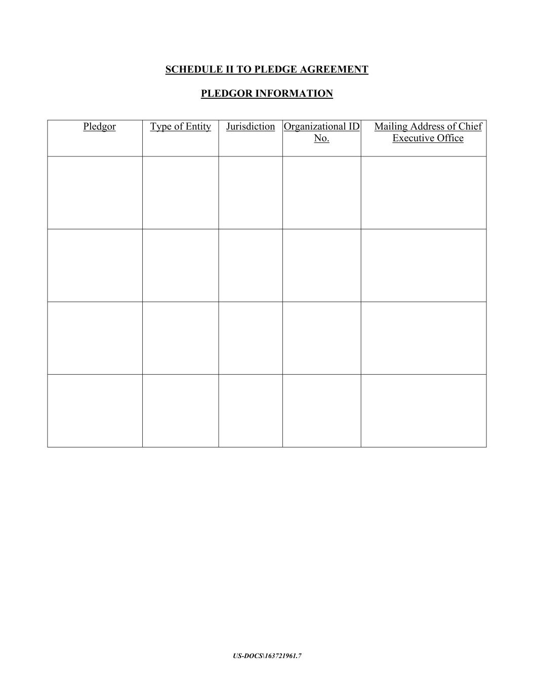 US-DOCS\163721961.7 SCHEDULE II TO PLEDGE AGREEMENT PLEDGOR INFORMATION Pledgor Type of Entity Jurisdiction Organizational ID No. Mailing Address of Chief Executive Office