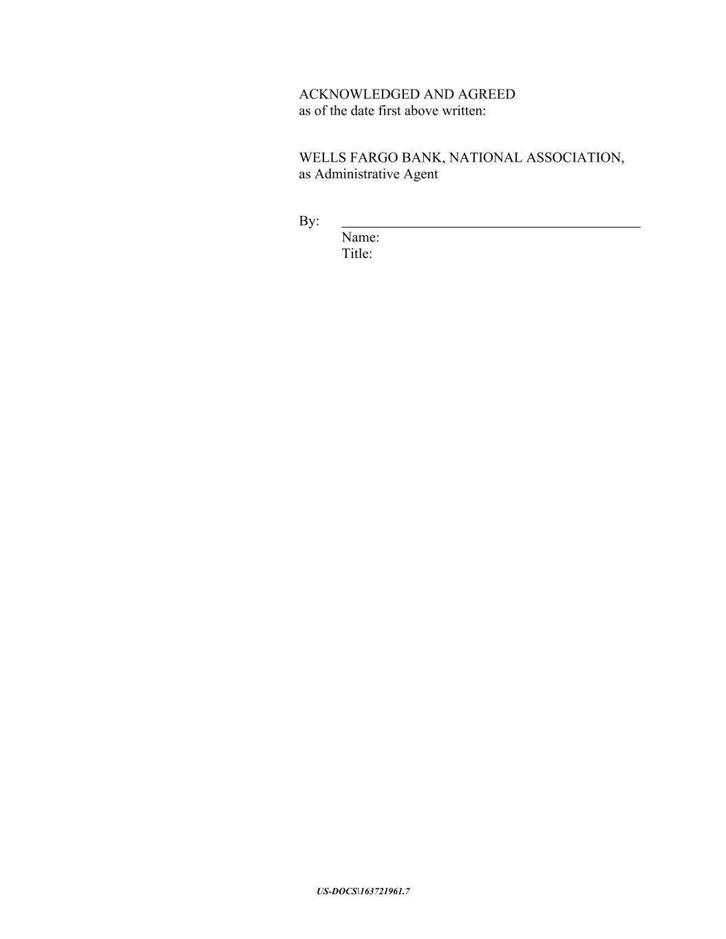 US-DOCS\163721961.7 ACKNOWLEDGED AND AGREED as of the date first above written: WELLS FARGO BANK, NATIONAL ASSOCIATION, as Administrative Agent By: Name: Title: