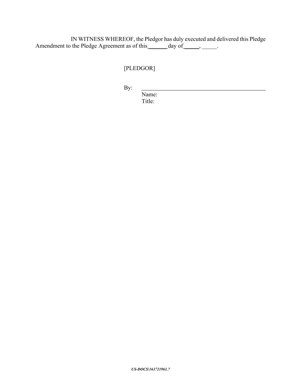 US-DOCS\163721961.7 IN WITNESS WHEREOF, the Pledgor has duly executed and delivered this Pledge Amendment to the Pledge Agreement as of this ______ day of _____, _____. [PLEDGOR] By: Name: Title: