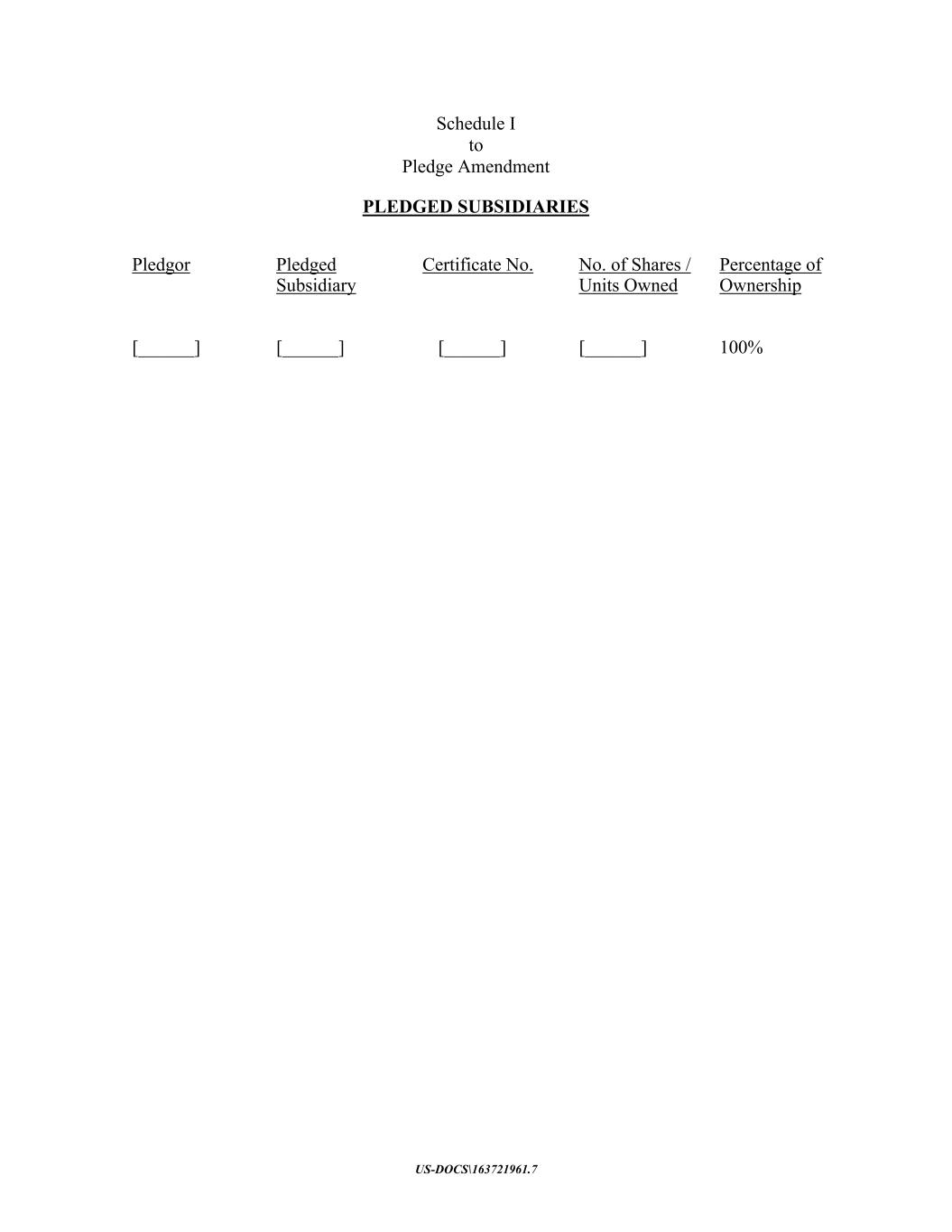 US-DOCS\163721961.7 Schedule I to Pledge Amendment PLEDGED SUBSIDIARIES Pledgor Pledged Subsidiary Certificate No. No. of Shares / Units Owned Percentage of Ownership [______] [______] [______] [______] 100%