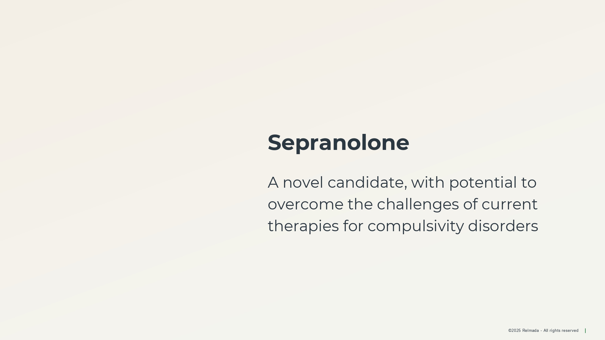 ©2025 Relmada - All rights reserved Sepranolone A novel candidate, with potential to overcome the challenges of current therapies for compulsivity disorders