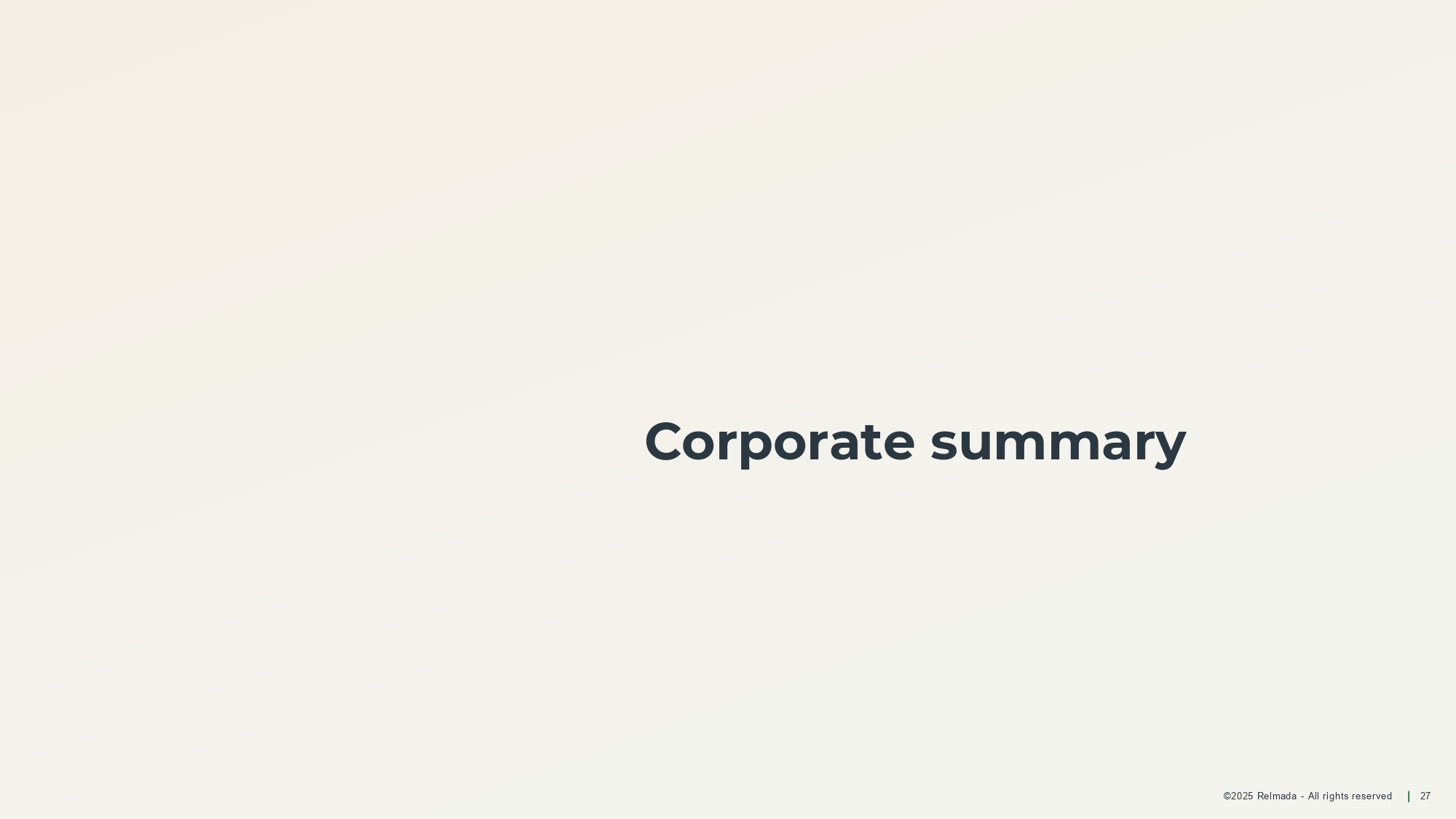 ©2025 Relmada - All rights reserved 27 Corporate summary