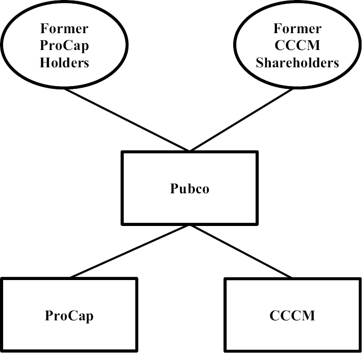 Pursuant to the Business Combination Agreement, and subject to the terms and conditions set forth therein, (i) at least one business day prior to the closing (the “Closing”) of the Business Combination, CCCM will de-register from the Register of Companies in the Cayman Islands by way of continuation and re-register in the State of Delaware so as to become a Delaware corporation, and (ii) upon the Closing, (x) SPAC Merger Sub will merge with and into CCCM, with CCCM continuing as the surviving entity (the “SPAC Merger”), and each outstanding security of CCCM immediately prior to the effective time of the SPAC Merger will automatically be cancelled in exchange for the right to receive substantially equivalent securities of Pubco, including certain Adjustment Shares (as defined below) as further described below, and (y) Company Merger Sub will merge with and into ProCap, with ProCap continuing as the surviving entity (the “Company Merger,” and together with SPAC Merger, the “Mergers”), and the members of ProCap (the “ProCap Holders”) will receive, in exchange for their membership interests in ProCap, shares of common stock, par value $0.001 per share, of Pubco (“Pubco Stock”), including certain Adjustment Shares as further described below. As a result of the Business Combination, CCCM and ProCap will become wholly-owned subsidiaries of Pubco, and Pubco will become a publicly traded company, all in accordance with applicable law and upon the terms and subject to the conditions set forth in the Business Combination Agreement.