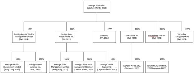 Prestige Wealth Inc. (“PWI”, or the “Company”) is a limited liability company established under the laws of the Cayman Islands on October 25, 2018. It is engaged in providing wealth management services and asset management services to high net worth and ultra-high net worth individuals and enterprises through its subsidiaries.