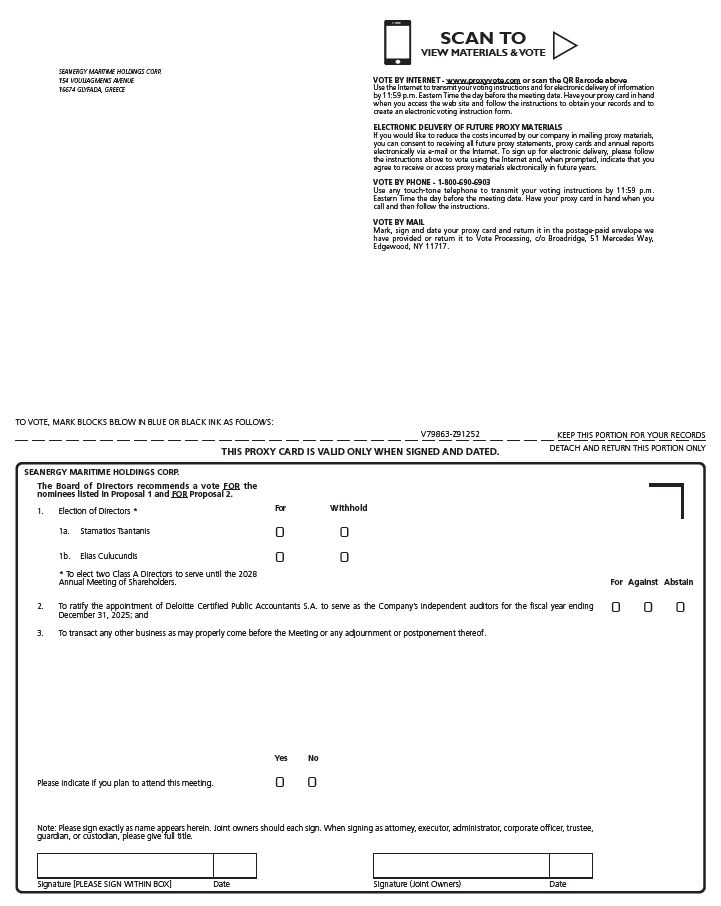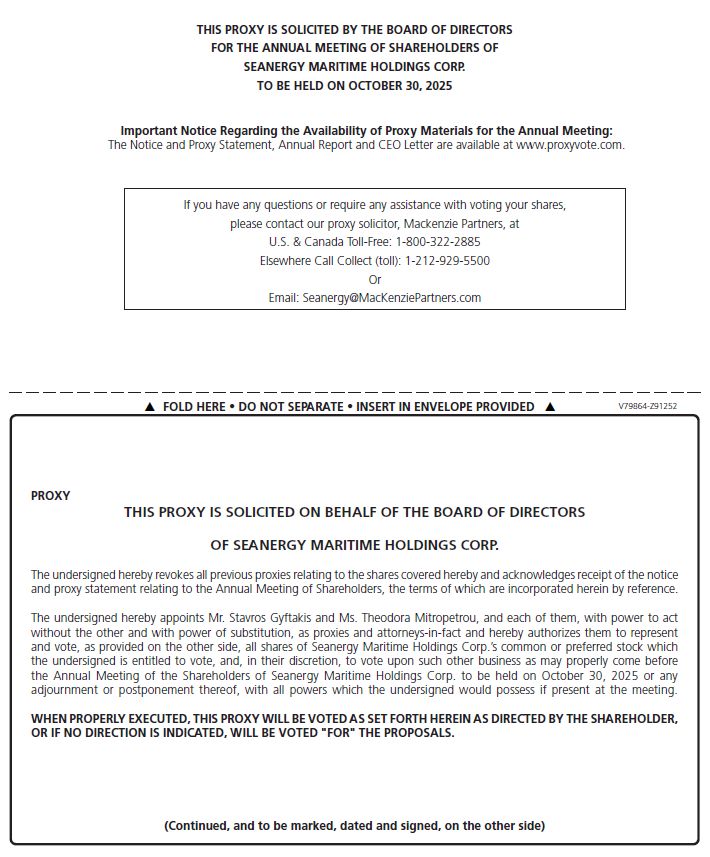 The enclosed proxy is solicited on behalf of the board of directors (the “Board”) of Seanergy Maritime Holdings Corp., a Marshall Islands