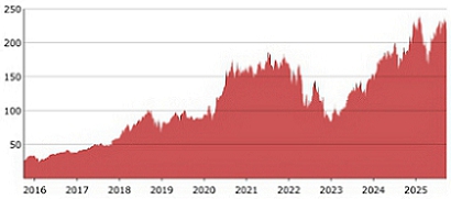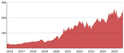 The following graph sets forth the historical performance of AAPL based on the daily historical closing values from September 25, 2015 through September 25, 2025. We obtained the closing values below from the Bloomberg Professional® service. We have not undertaken any independent review of, or made any due diligence inquiry with respect to, the information obtained from the Bloomberg Professional® service.