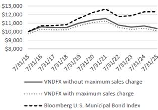 The chart below reflects a hypothetical $10,000 investment in the class of shares noted.