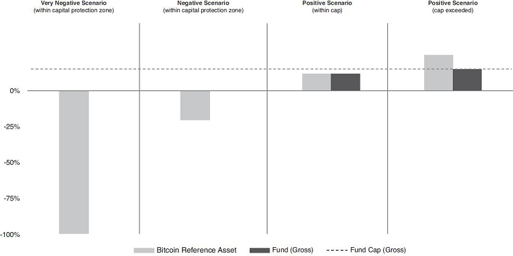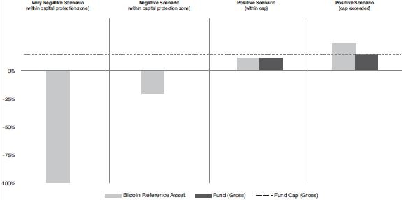 ● Capital Protection: Represents downside protection target equal to 100% of the negative price return (before total fund operating fees and expenses) of Spot bitcoin. There is no guarantee the Fund will be successful in providing the sought-after downside protection.