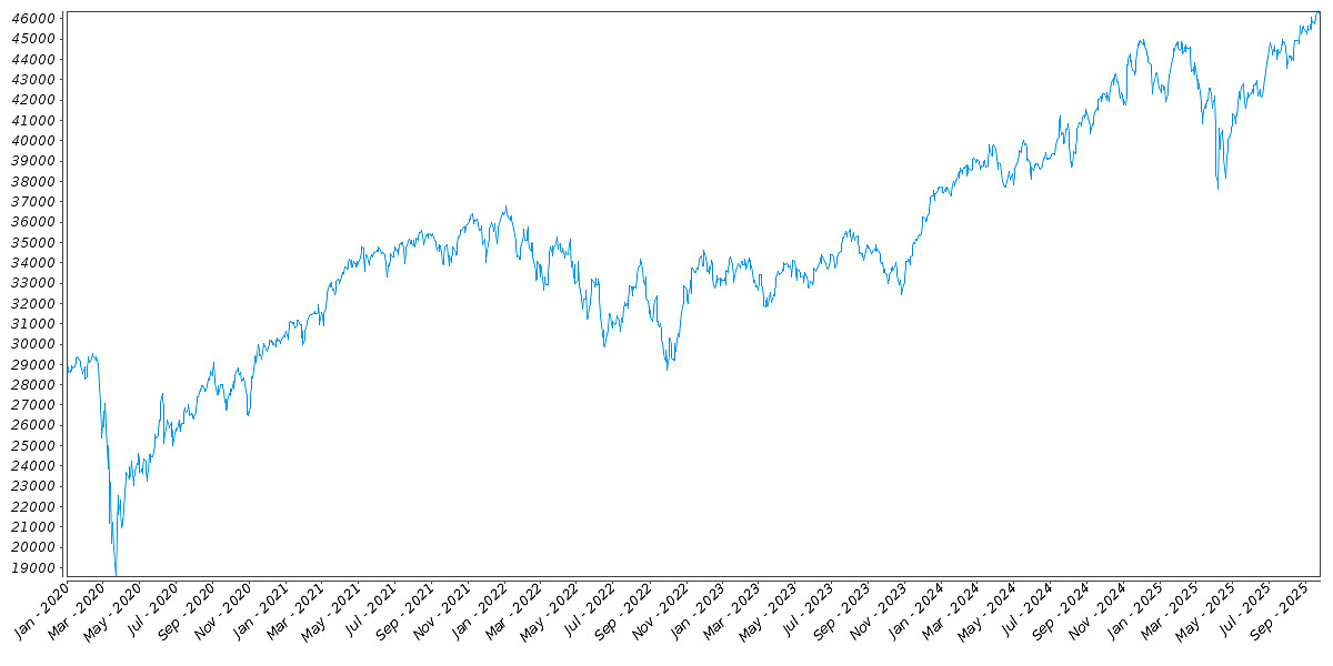 The following graph sets forth the daily historical performance of the INDU in the period from January 2, 2020 through September 24, 2025. We obtained this historical data from Bloomberg L.P. We have not independently verified the accuracy or completeness of the information obtained from Bloomberg L.P. On September 24, 2025, the closing level of the INDU was 46,121.28.