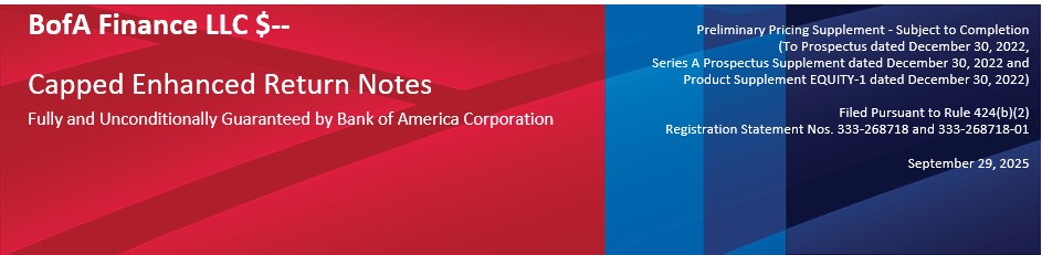 Any payment on the Notes is subject to the credit risk of BofA Finance LLC (“BofA Finance” or the “Issuer”), as issuer of the Notes, and Bank of America Corporation (“BAC” or the “Guarantor”), as guarantor of the Notes. |