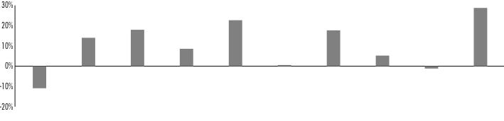* The returns shown above are for Utilities Portfolio, a class of shares of the fund that is not offered through this prospectus. Class A, Class M, Class C, Class I, and Class Z would have substantially similar annual returns to Utilities Portfolio because the classes are invested in the same portfolio of securities. Class A's, Class M's, Class C's, Class I's, and Class Z's returns would differ from Utilities Portfolio's returns only to the extent that the classes do not have the same expenses.