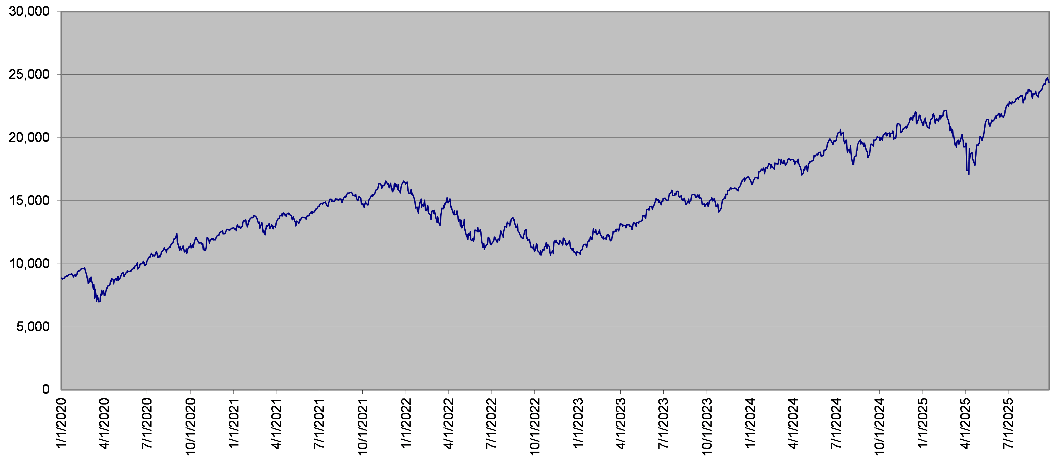 SPX Index Daily Closing Levels January 1, 2020 to September 25, 2025 |