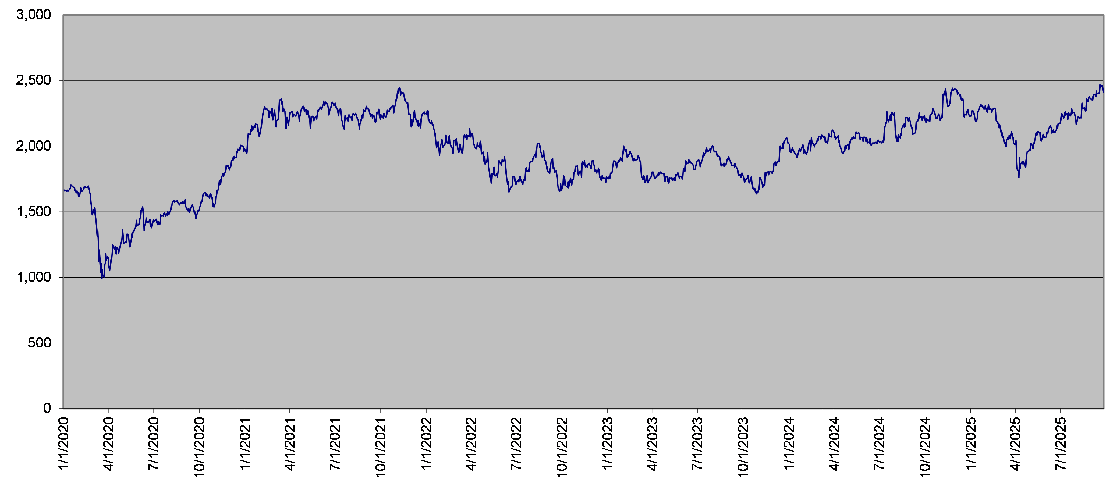 RTY Index Daily Closing Levels January 1, 2020 to September 25, 2025 |