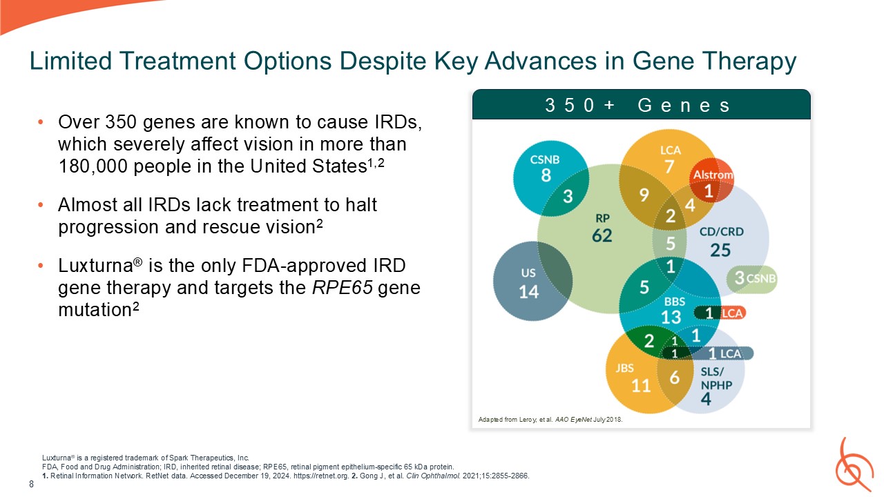 as a result of various risks and uncertainties, including, without limitation: our clinical data related to gene therapies for the treatment of inherited retinal diseases is preliminary and related to a relatively small group of patients,