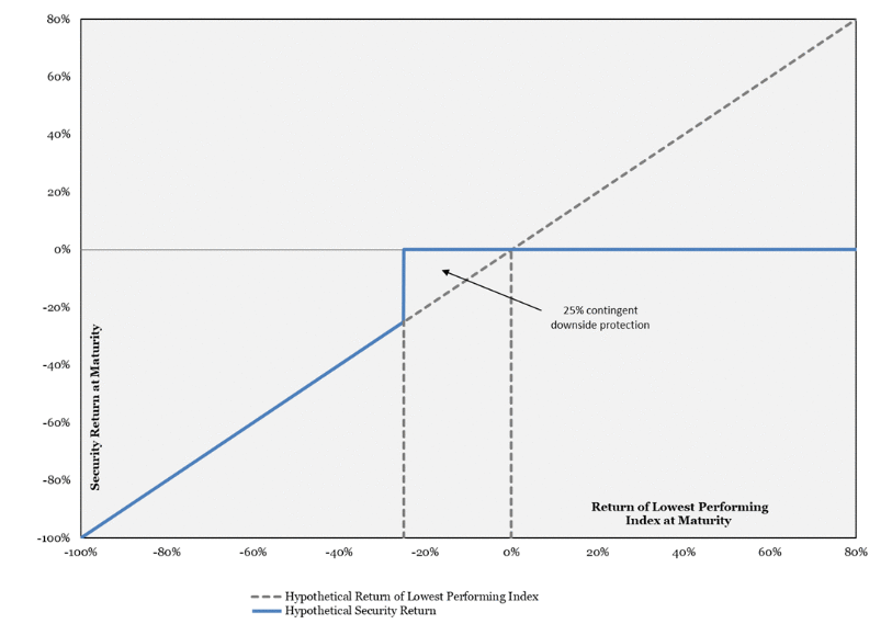 Any return on the securities will be limited to the sum of your contingent coupon payments, if any. You will not participate in any appreciation of any Index, but you will have full downside exposure to the lowest performing Index on the final calculation day if the ending level of that Index is less than its downside threshold level.