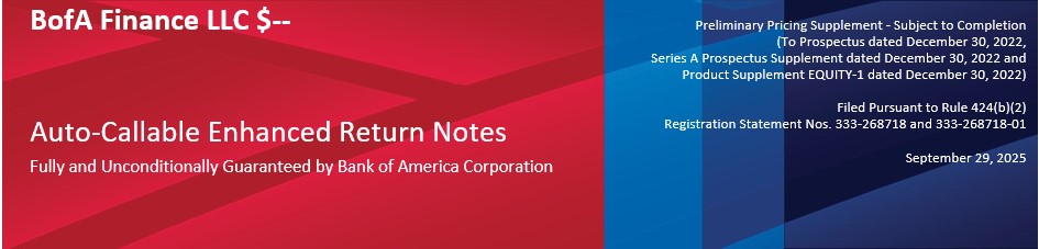 Any payment on the Notes is subject to the credit risk of BofA Finance LLC (“BofA Finance” or the “Issuer”), as issuer of the Notes, and Bank of America Corporation (“BAC” or the “Guarantor”), as guarantor of the Notes. |
