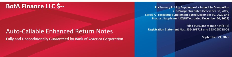 Any payment on the Notes is subject to the credit risk of BofA Finance LLC (“BofA Finance” or the “Issuer”), as issuer of the Notes, and Bank of America Corporation (“BAC” or the “Guarantor”), as guarantor of the Notes. |