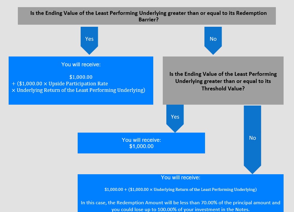 In this case, the Redemption Amount will be less than 70.00% of the principal amount and you could lose up to 100.00% of your investment in the Notes. |
