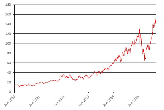 We obtained the information regarding the historical performance of the reference asset in the graph below from Bloomberg, without independent review or verification. The graph below illustrates the performance of the reference asset from January 1, 2020 through September 26, 2025. The closing price of the reference asset on September 26, 2025 was $142.50.
