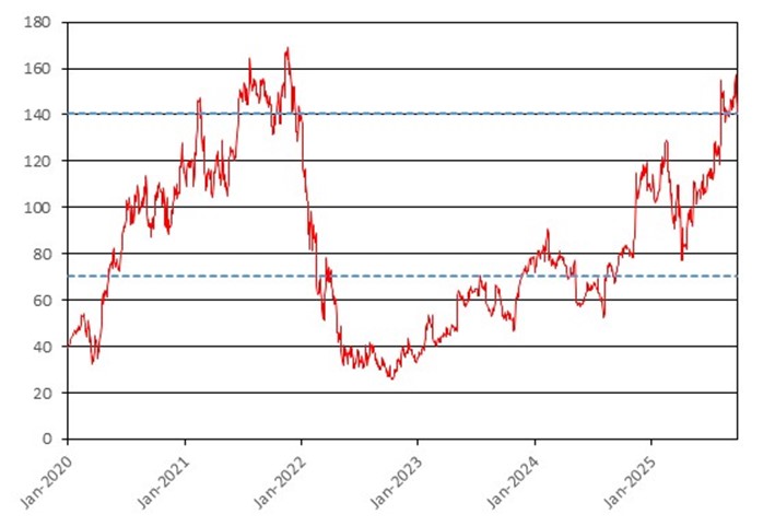 $140.25, which is equal to the closing price of the underlying stock on the pricing date |
