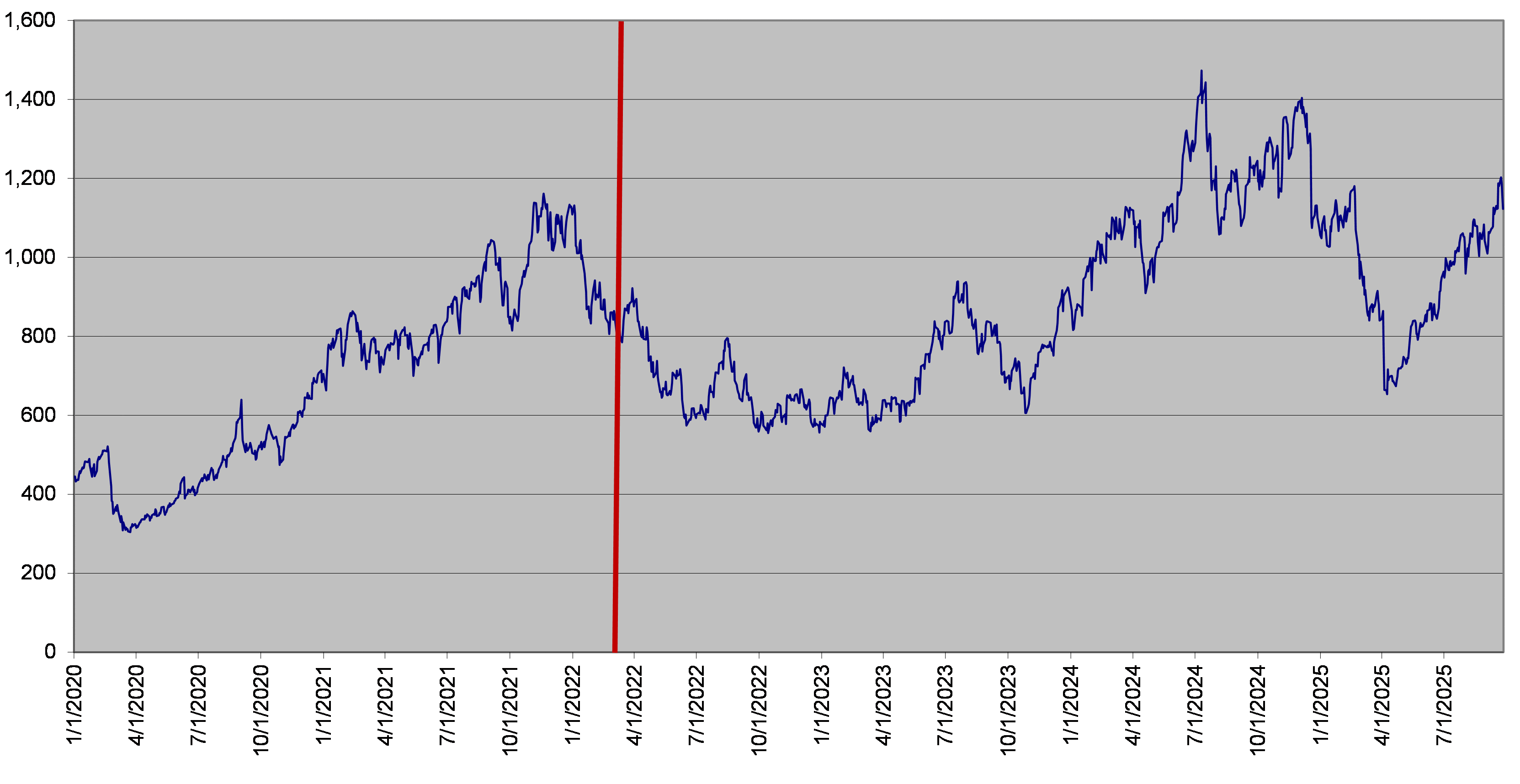 Underlier Daily Closing Levels January 1, 2020* to September 25, 2025 |