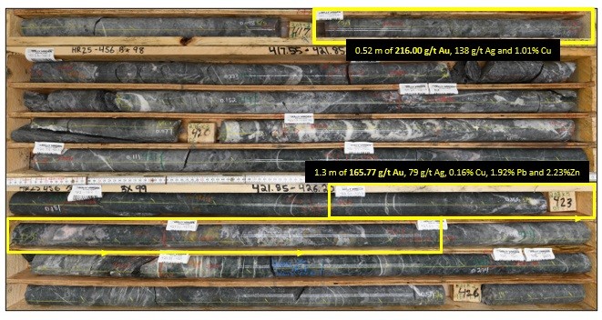 HR25-456: 3.34 g/t Au over 120 meters, including 216 g/t Au over 0.52 meters and