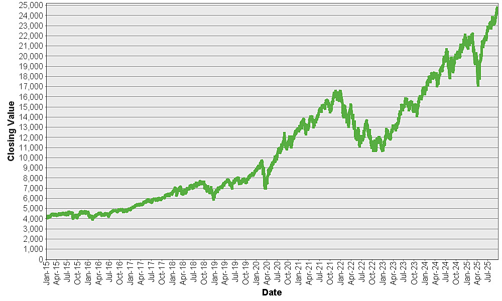 The graph below shows the closing value of the Nasdaq-100 Index® for each day such value was available from January 2, 2015 to September 29, 2025. We obtained the closing values from Bloomberg L.P., without independent verification. You should not take historical closing values as an indication of future performance.
