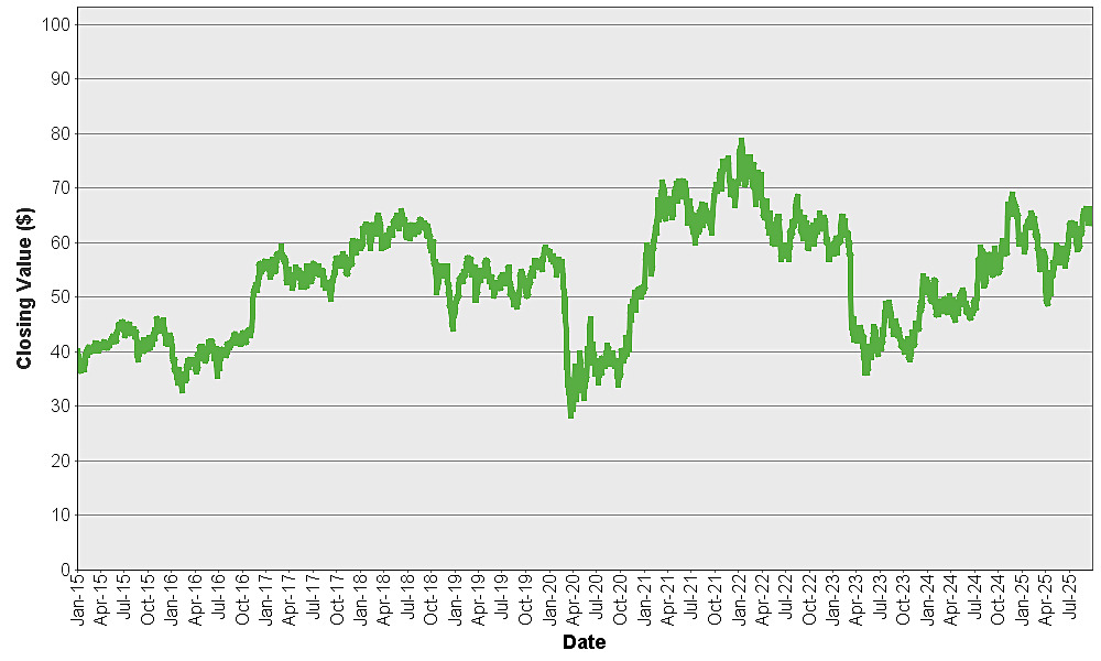 The graph below shows the closing value of the SPDR® S&P® Regional Banking ETF for each day such value was available from January 2, 2015 to September 29, 2025. We obtained the closing values from Bloomberg L.P., without independent verification. You should not take historical closing values as an indication of future performance.