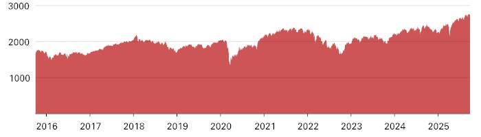 The following graph sets forth the historical performance of the SPX based on the daily historical closing values from September 30, 2015 through September 29, 2025. We obtained the closing values below from the Bloomberg Professional® service. We have not undertaken any independent review of, or made any due diligence inquiry with respect to, the information obtained from the Bloomberg Professional® service.![]() |