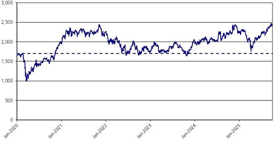 [•], which is the index closing value of the Russell 2000® Index on the pricing date