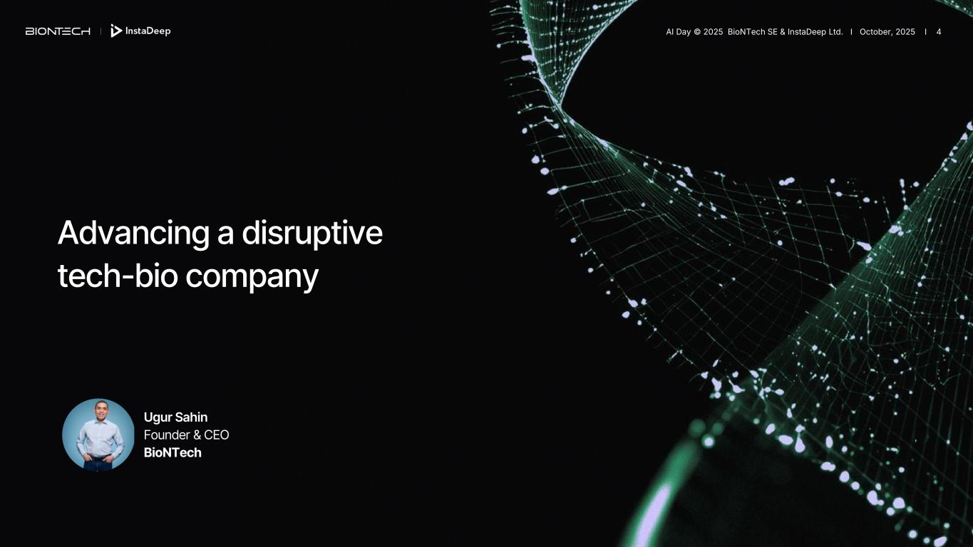 Advancing a disruptive tech-bio company Ugur Sahin Founder & CEO BioNTech AI Day © 2025 BioNTech SE & InstaDeep Ltd. I October, 2025 I 4