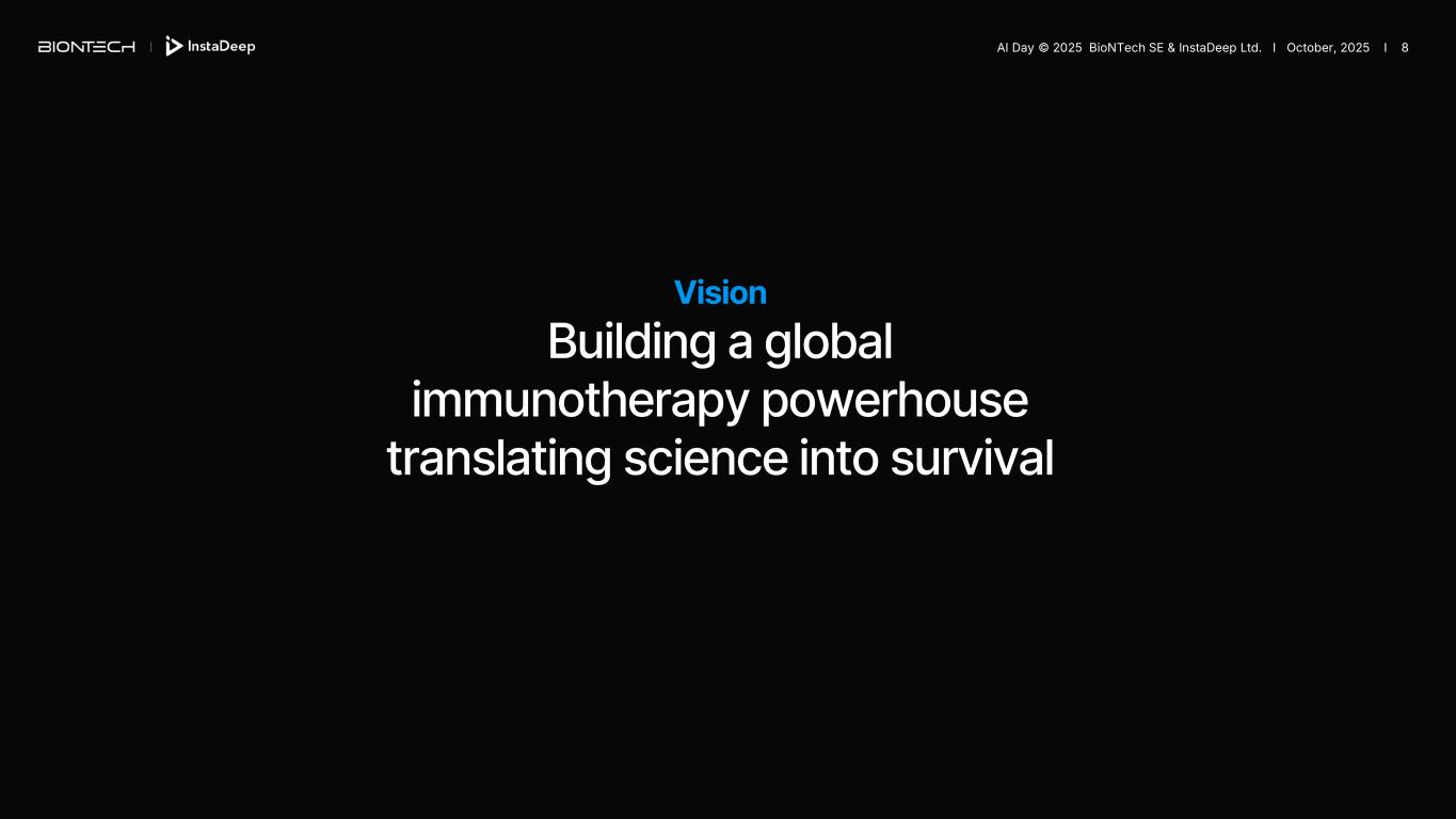 Vision Building a global immunotherapy powerhouse translating science into survival AI Day © 2025 BioNTech SE & InstaDeep Ltd. I October, 2025 I 8
