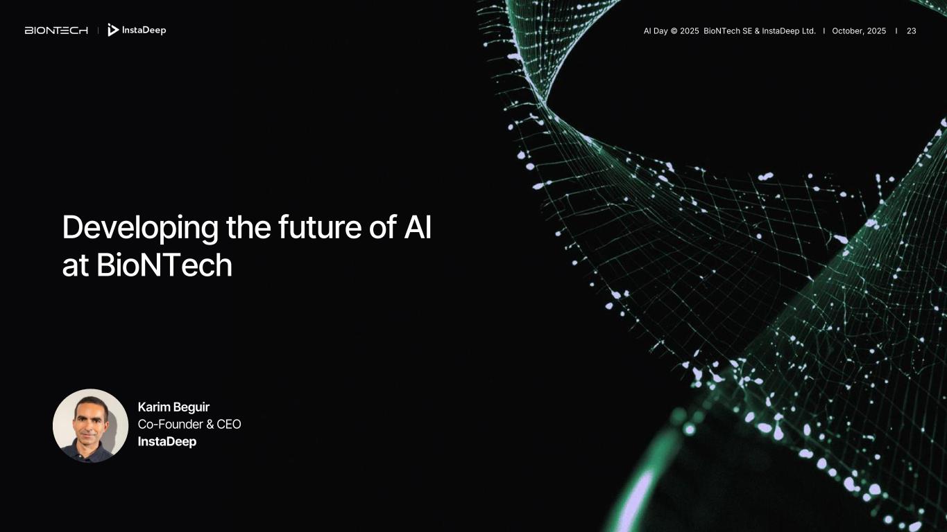 Karim Beguir Co-Founder & CEO InstaDeep Developing the future of AI at BioNTech AI Day © 2025 BioNTech SE & InstaDeep Ltd. I October, 2025 I 23