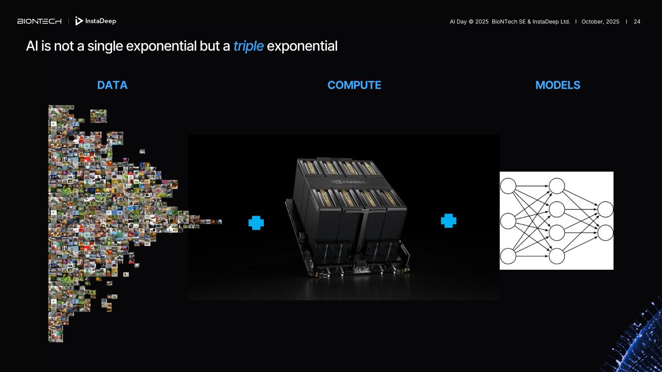 AI is not a single exponential but a triple exponential DATA COMPUTE MODELS AI Day © 2025 BioNTech SE & InstaDeep Ltd. I October, 2025 I 24
