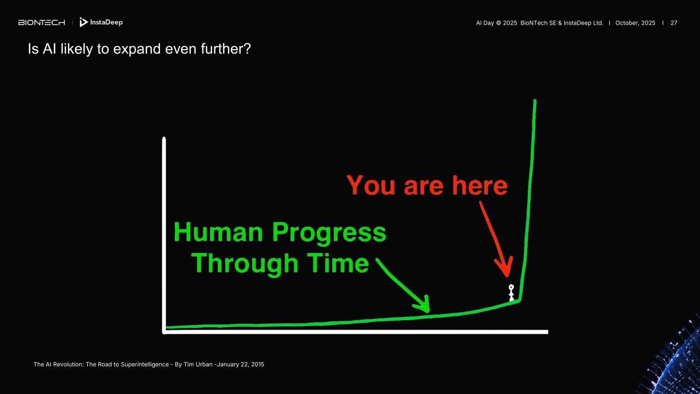 Is AI likely to expand even further? The AI Revolution: The Road to Superintelligence - By Tim Urban -January 22, 2015 AI Day © 2025 BioNTech SE & InstaDeep Ltd. I October, 2025 I 27