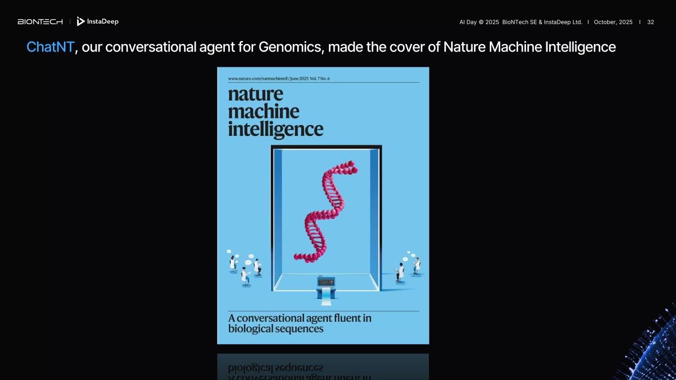 ChatNT, our conversational agent for Genomics, made the cover of Nature Machine Intelligence AI Day © 2025 BioNTech SE & InstaDeep Ltd. I October, 2025 I 32