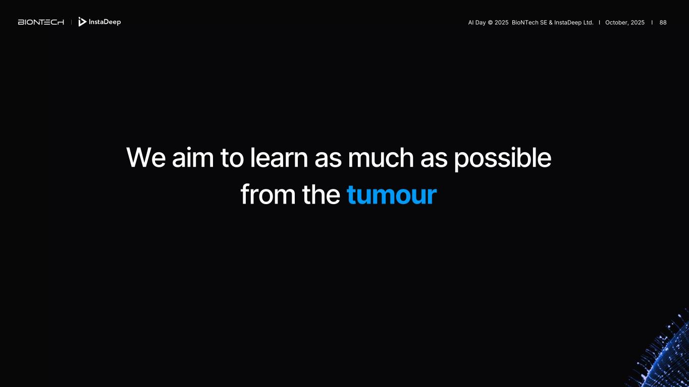 We aim to learn as much as possible from the tumour AI Day © 2025 BioNTech SE & InstaDeep Ltd. I October, 2025 I 88