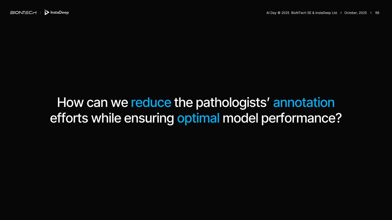 How can we reduce the pathologists’ annotation efforts while ensuring optimal model performance? AI Day © 2025 BioNTech SE & InstaDeep Ltd. I October, 2025 I 98
