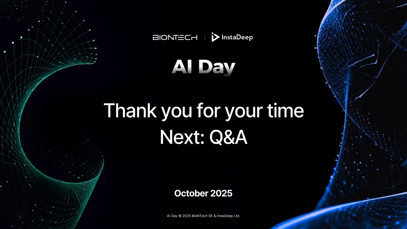 Thank you for your time Next: Q&A AI Day © 2025 BioNTech SE & InstaDeep Ltd. October 2025