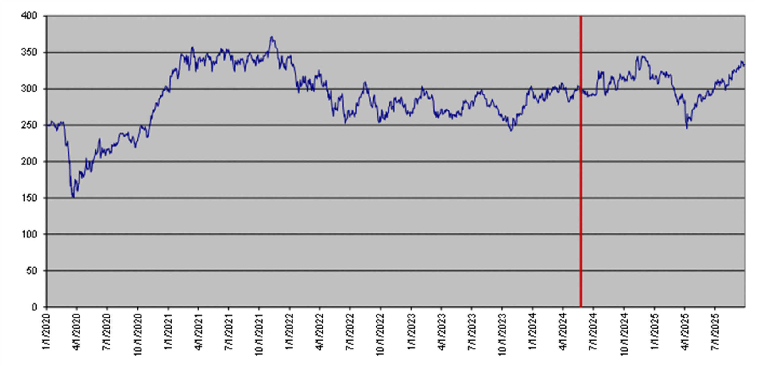 Underlier Daily Closing Levels January 1, 2020* to September 29, 2025 |