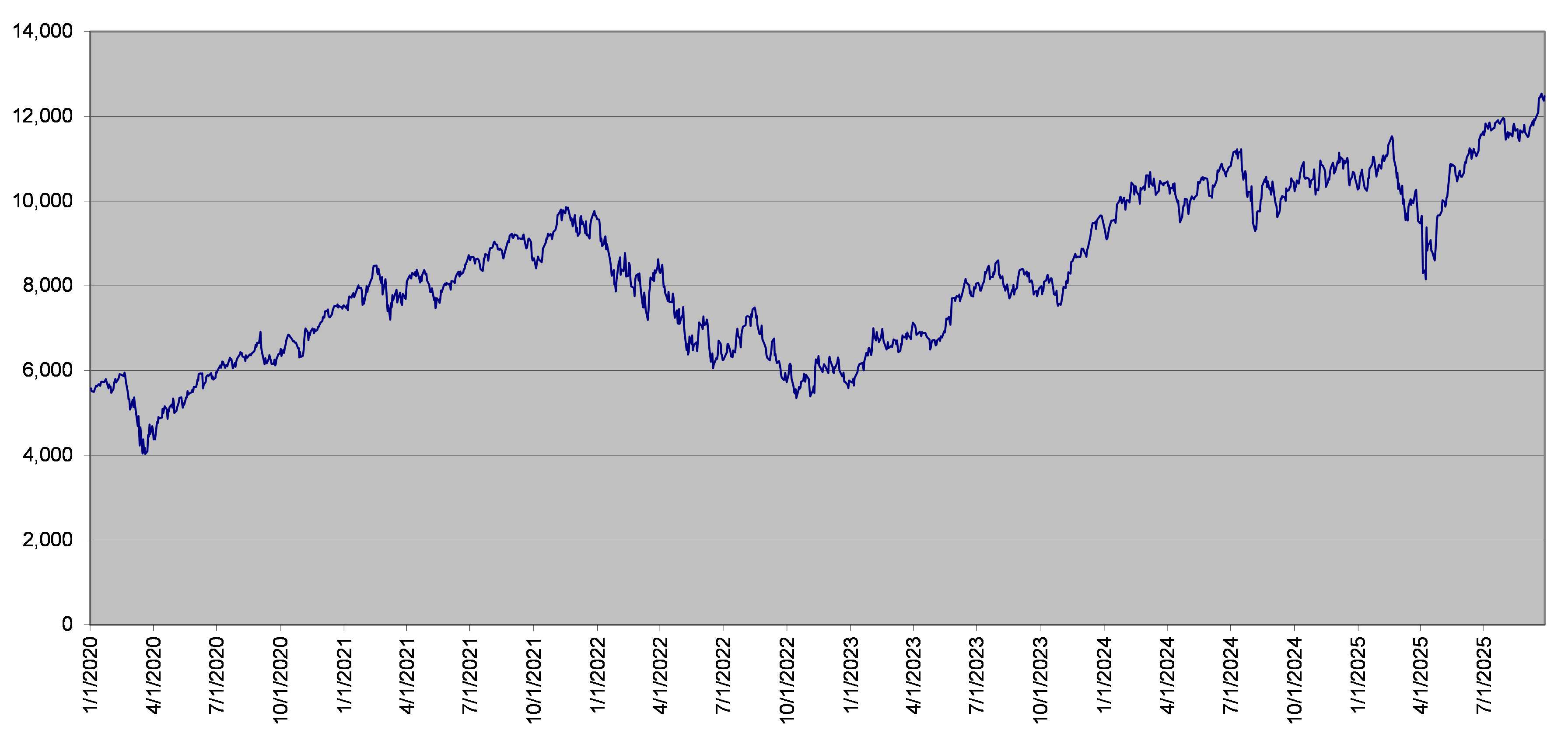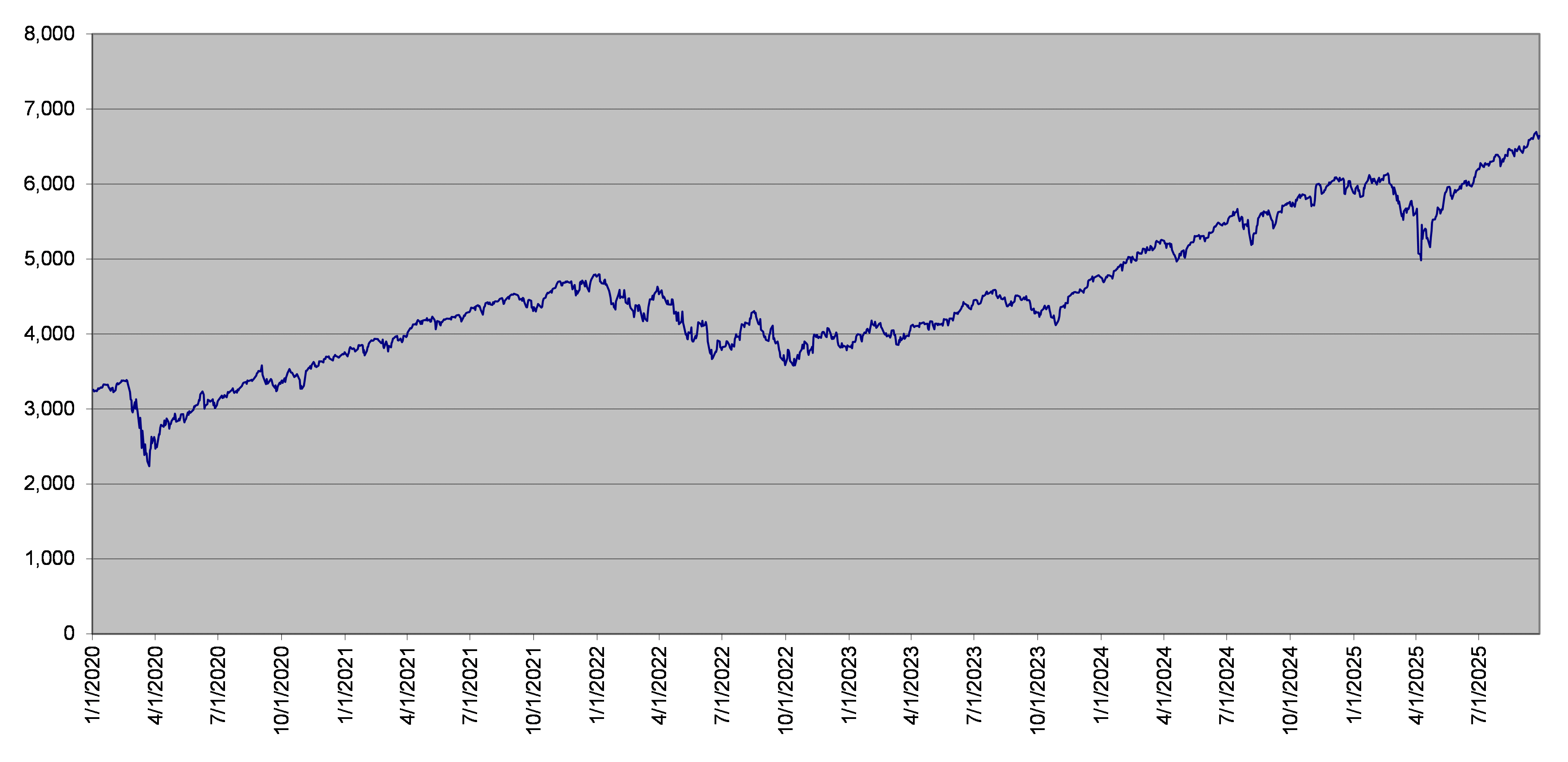 SPX Index Daily Closing Levels January 1, 2020 to September 26, 2025 |