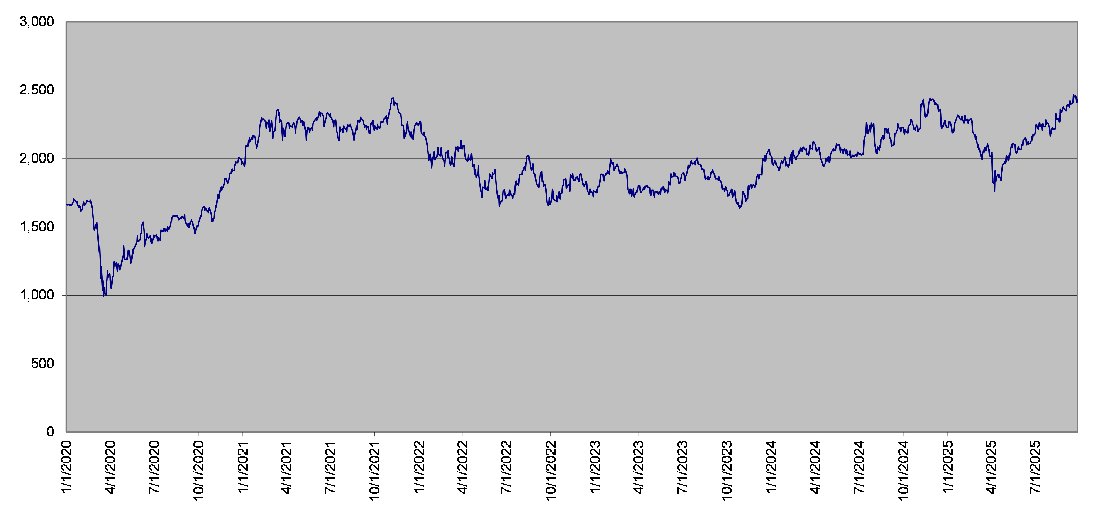 RTY Index Daily Closing Levels January 1, 2020 to September 26, 2025 |