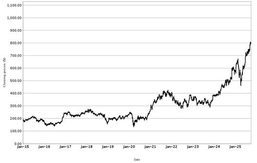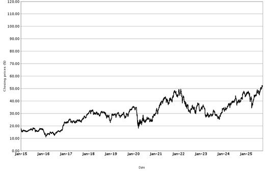 The following graphs set forth historical closing values of the Basket Underliers for the period from January 1, 2015 to September 30, 2025. We obtained the information in the graphs from Bloomberg Financial Markets, without independent investigation. We cannot give you assurance that the performance of the Basket Underliers will result in the return of all of your initial investment.