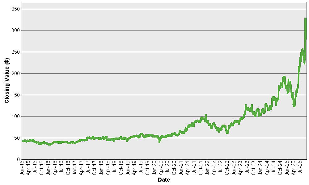 The graph below shows the closing value of Oracle Corporation for each day such value was available from January 2, 2015 to September 30, 2025. We obtained the closing values from Bloomberg L.P., without independent verification. If certain corporate transactions occurred during the historical period shown below, including, but not limited to, spin-offs or mergers, then the closing values shown below for the period prior to the occurrence of any such transaction have been adjusted by Bloomberg L.P. as if any such transaction had occurred prior to the first day in the period shown below. You should not take historical closing values as an indication of future performance.