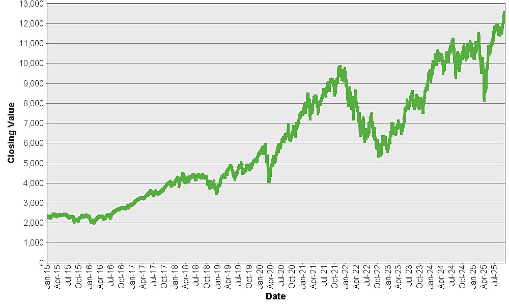 The graph below shows the closing value of the Nasdaq-100® Technology Sector IndexSM for each day such value was available from January 2, 2015 to September 30, 2025. We obtained the closing values from Bloomberg L.P., without independent verification. You should not take historical closing values as an indication of future performance.